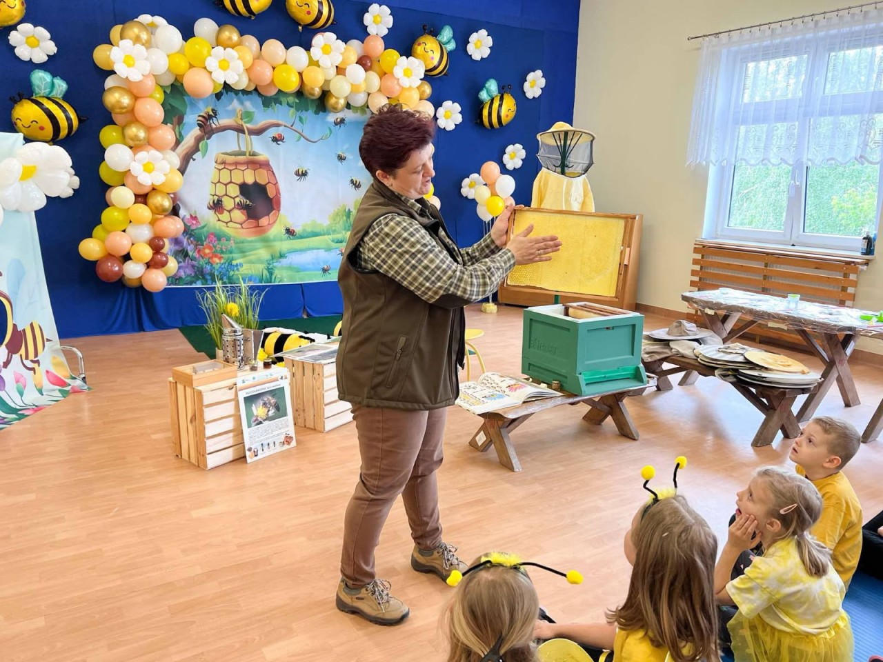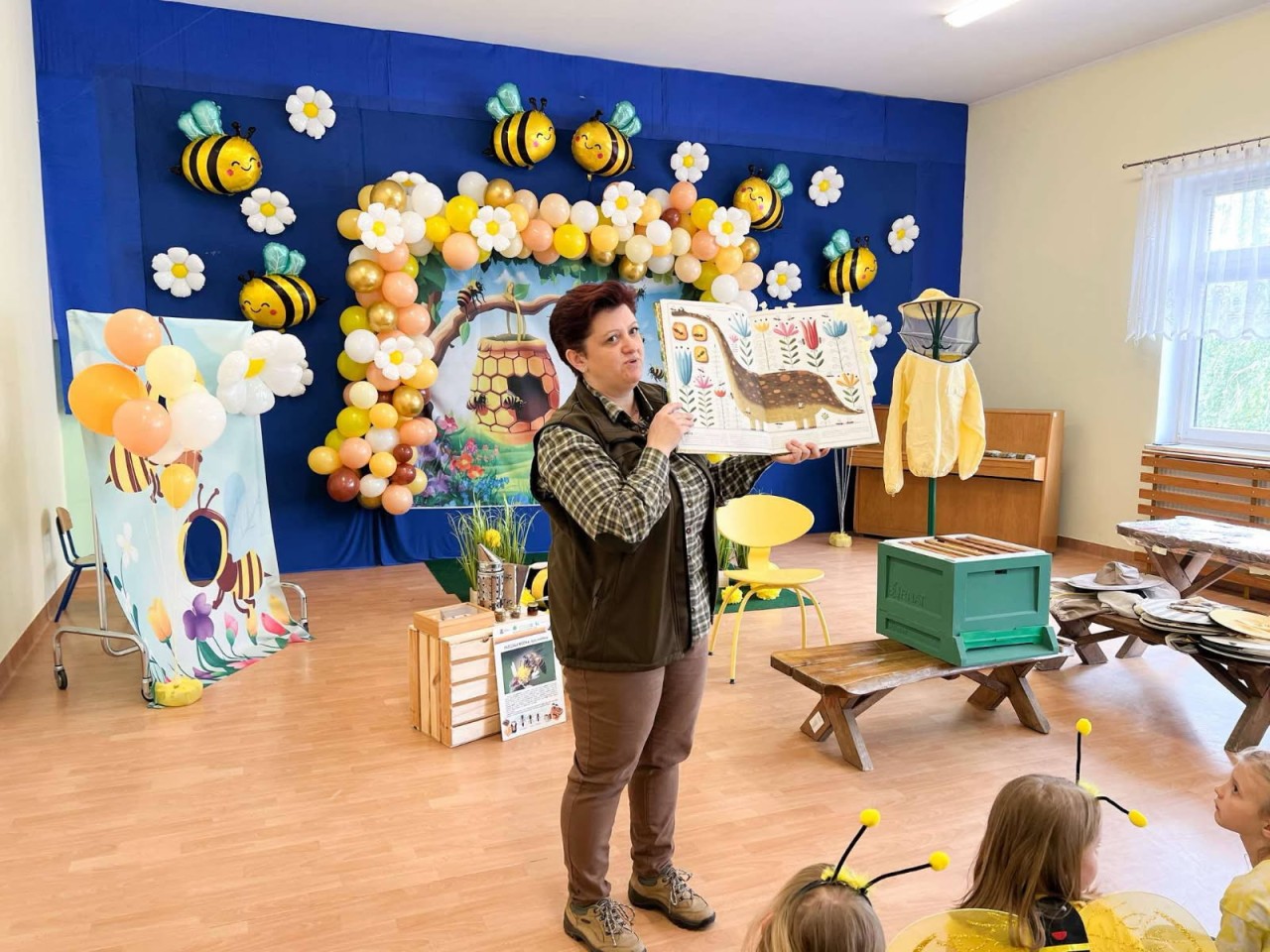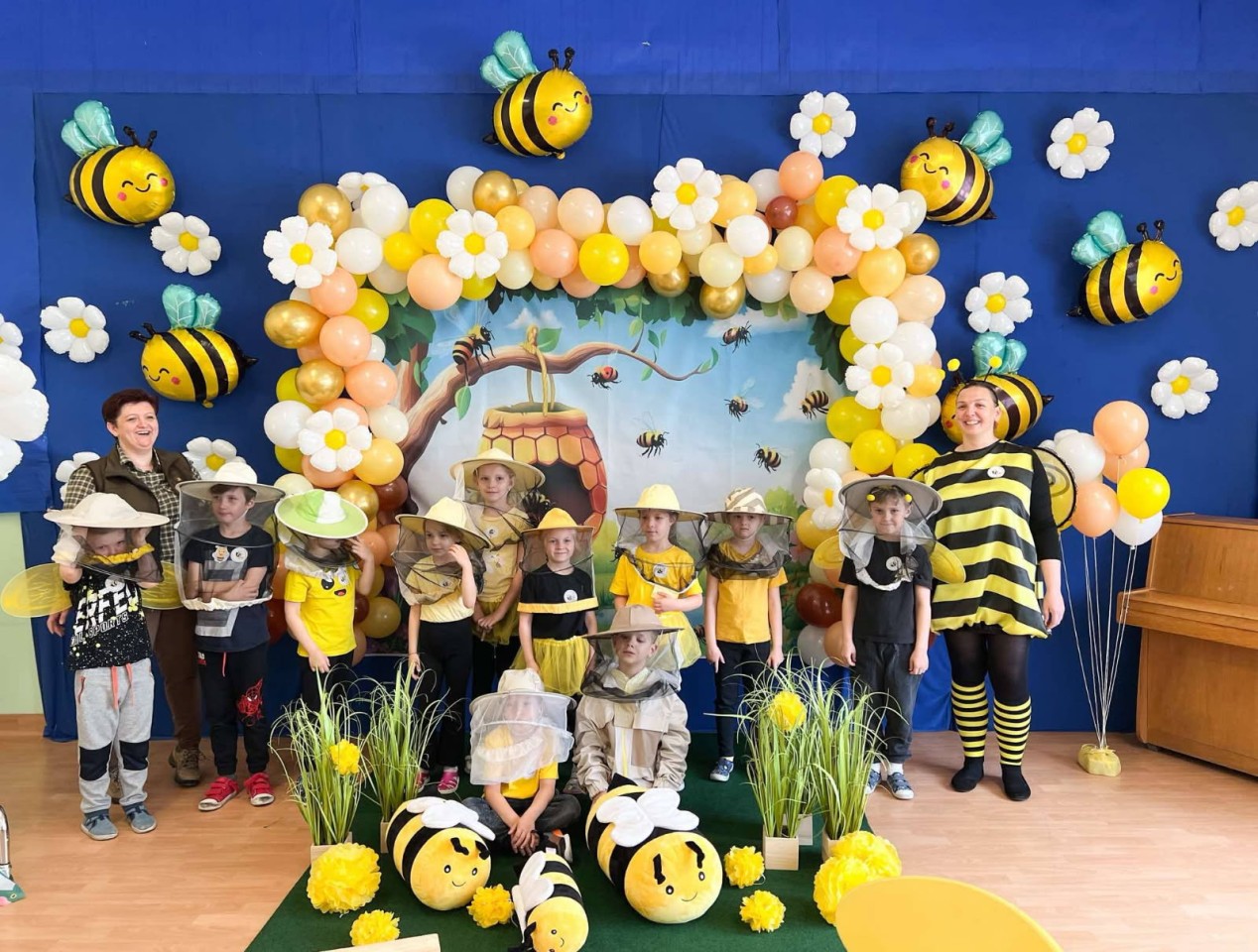 W minionym tygodniu, w ramach projektu edukacyjnego „Zgrany duet - Przedszkole nr 4 i Przedszkole nr 10”, wspólnie obchodziliśmy Międzynarodowy Dzień Pszczół. Dzieci z obu placówek spotkały się w Przedszkolu nr 10 w Skierniewicach. Wydarzanie rozpoczęliśmy od prelekcji pracownika Oddziału Bolimowskiego Parku Krajobrazowego na temat różnorodności pszczół (pszczoła miodna, pszczoły dzikie) oraz najważniejszej działalności wszystkich pszczół – zapylania.